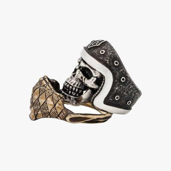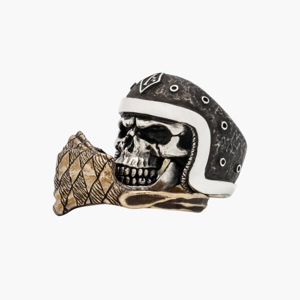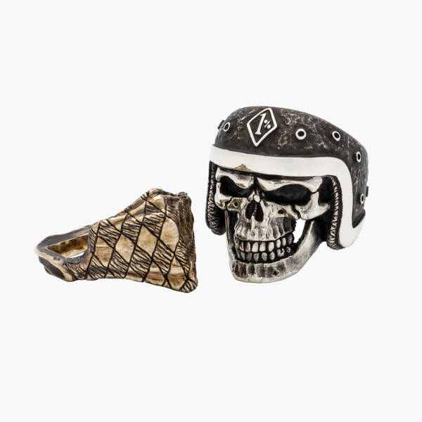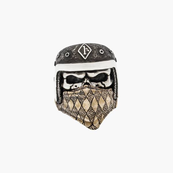 Unser Meisterstück! Silberschmuck in Bestform! In keinen anderen unserer Ringe ist mehr Feinarbeit geflossen. Die Zähne und viele weitere Details wurden in vielen Stunden unter dem Mikroskop bis ins kleinste Detail ausgearbeitet. Das Stofftuch (Bandana) wird für jeden Ring nach dem Guss einzeln aufmodelliert und dann gegossen, damit beide Stücke perfekt zusammen passen. Nach dem Guss wird das Tuch nochmals aufgepasst. Zuletzt erhält der komplette Ring sein finales Finish. Jeder Ring wird ein eigenes Kunstwerk!